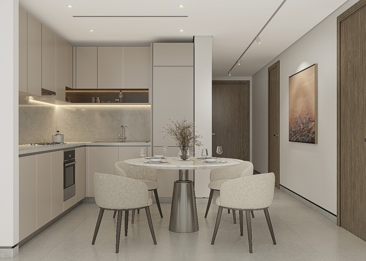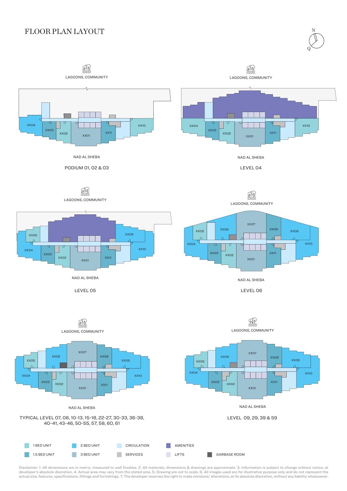 The residents can experience stunning views across all floors, community views on the front, clear views of the Dubai Al Ain Road on one side & shimmering city lights on the other. Take in the unique beachfront views from the open podiums and balconies*.