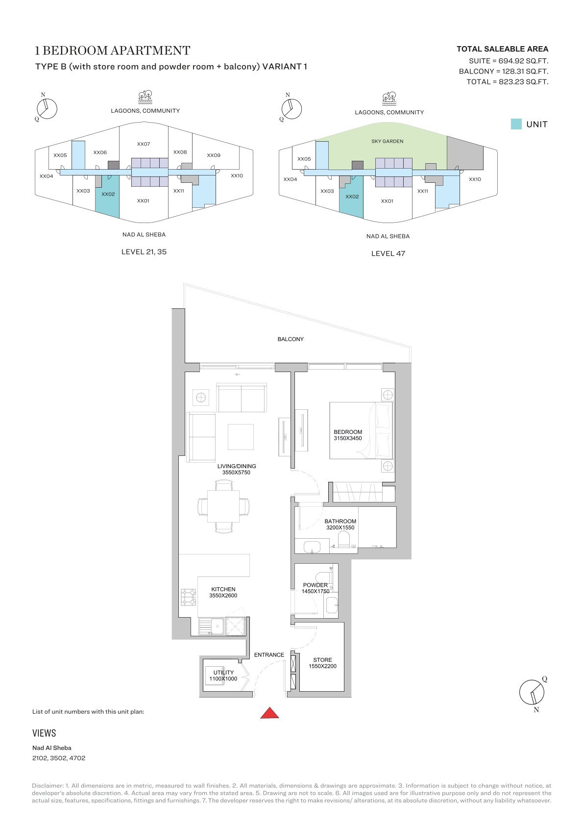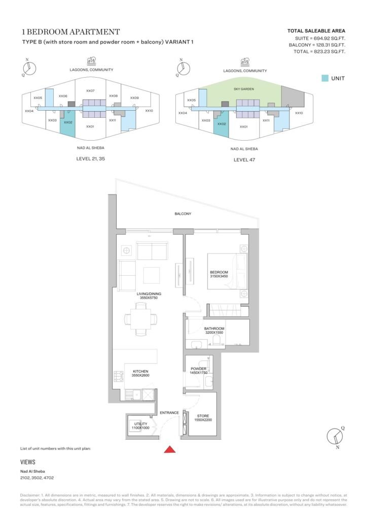 SUITE = 694.92 SQ.FT. BALCONY = 128.31 SQ.FT. TOTAL = 823.23 SQ.FT.