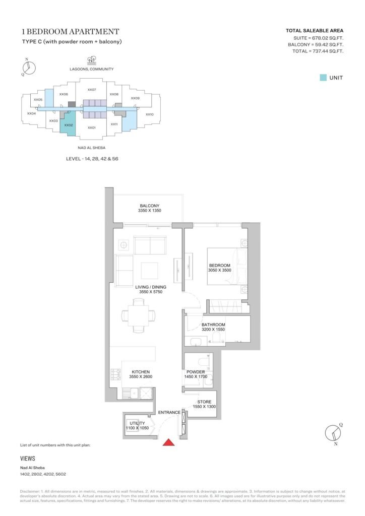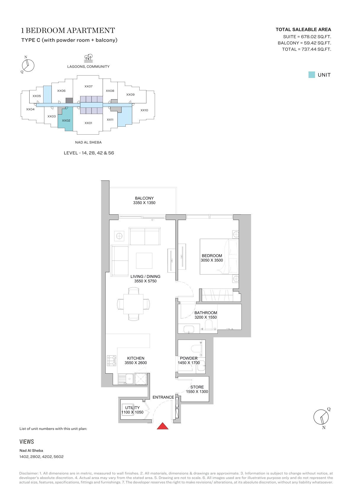 SUITE = 678.02 SQ.FT. BALCONY = 59.42 SQ.FT. TOTAL = 737.44 SQ.FT.