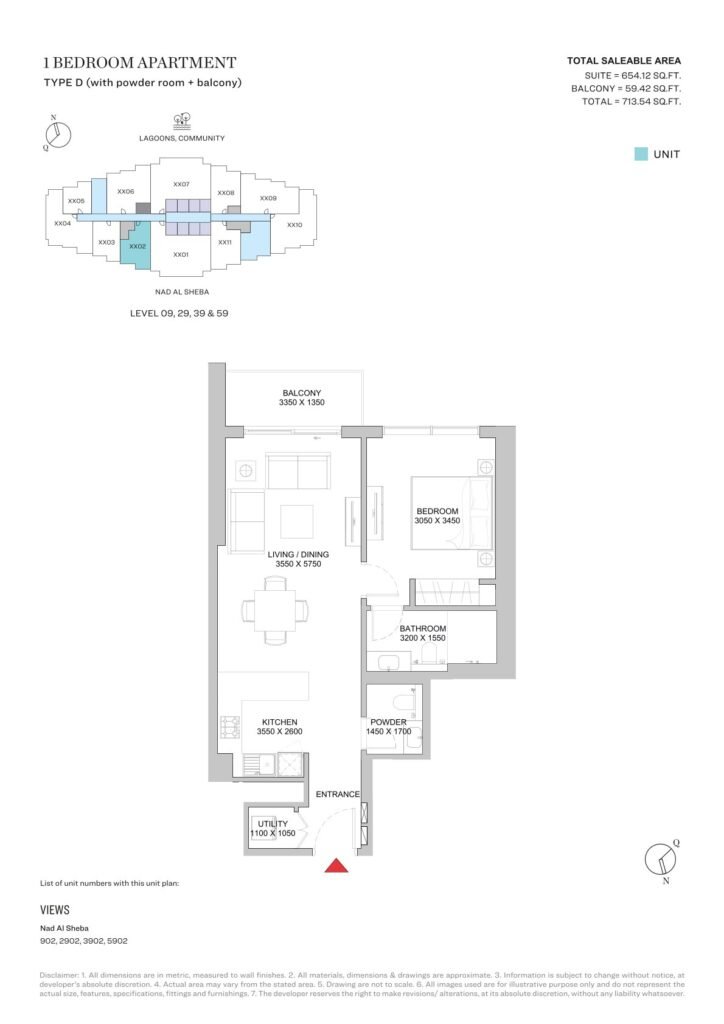 SUITE = 654.12 SQ.FT. BALCONY = 59.42 SQ.FT. TOTAL = 713.54 SQ.FT.