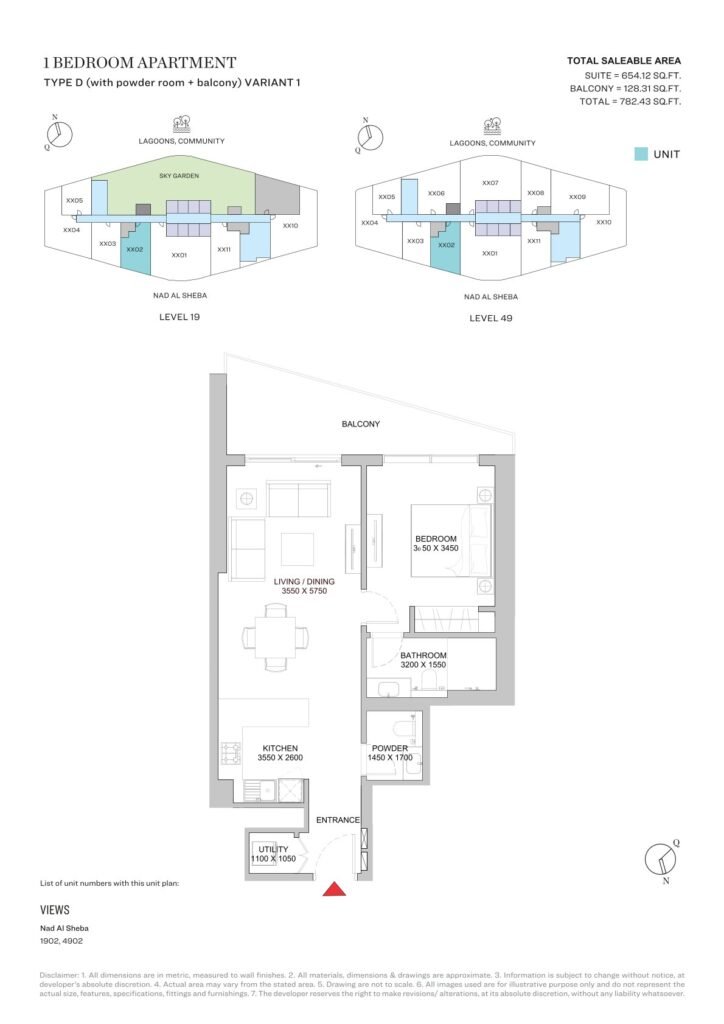 SUITE = 654.12 SQ.FT. BALCONY = 128.31 SQ.FT. TOTAL = 782.43 SQ.FT.