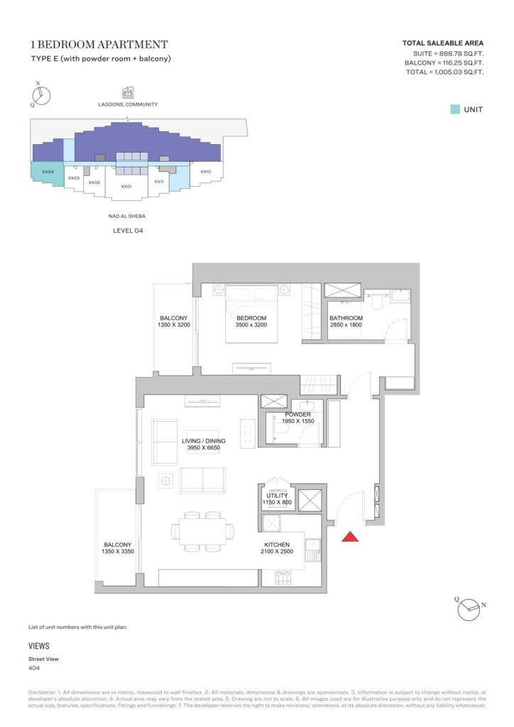 SUITE = 888.78 SQ.FT. BALCONY = 116.25 SQ.FT. TOTAL = 1,005.03 SQ.FT.