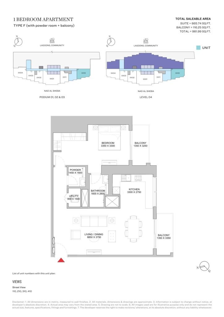 SUITE = 865.74 SQ.FT. BALCONY = 116.25 SQ.FT. TOTAL = 981.99 SQ.FT.