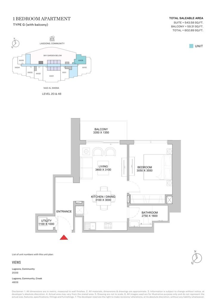 SUITE = 543.58 SQ.FT. BALCONY = 59.31 SQ.FT. TOTAL = 602.89 SQ.FT.