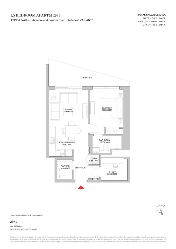 SUITE = 618.71 SQ.FT. BALCONY = 126.80 SQ.FT. TOTAL = 745.51 SQ.FT.