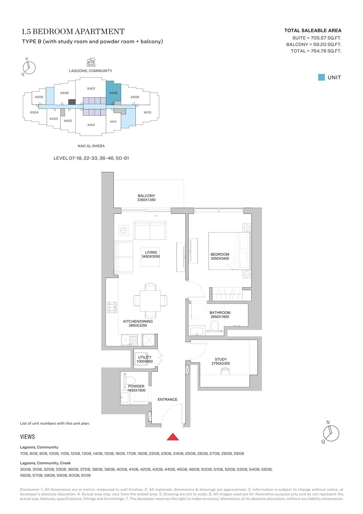SUITE = 705.57 SQ.FT. BALCONY = 59.20 SQ.FT. TOTAL = 764.78 SQ.FT.