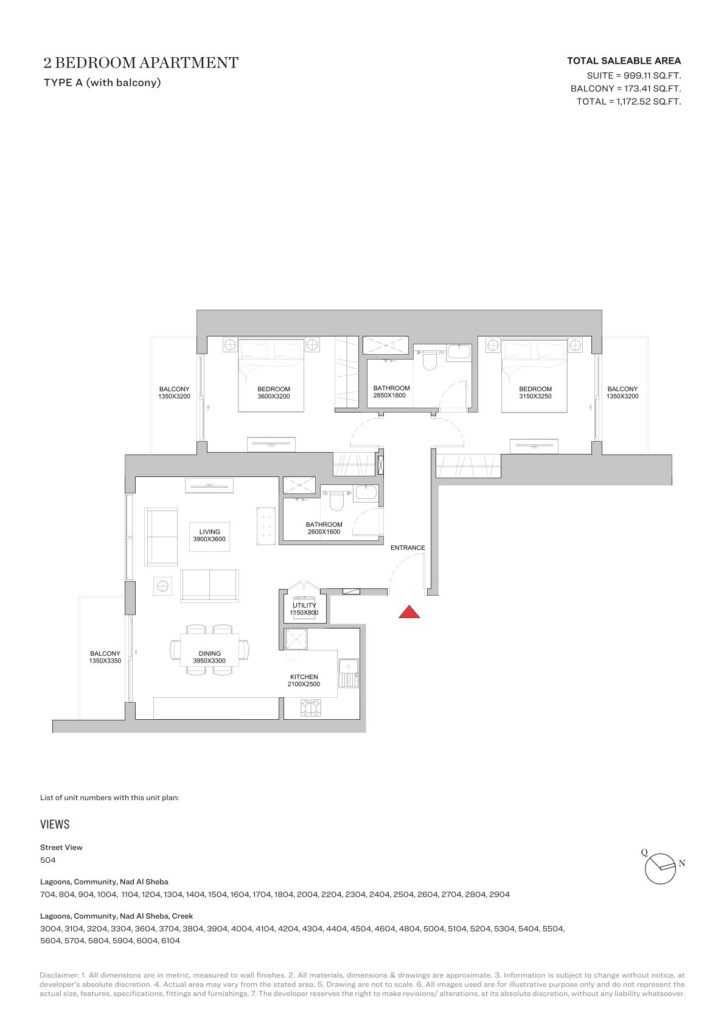 SUITE = 999.11 SQ.FT. BALCONY = 173.41 SQ.FT. TOTAL = 1,172.52 SQ.FT.