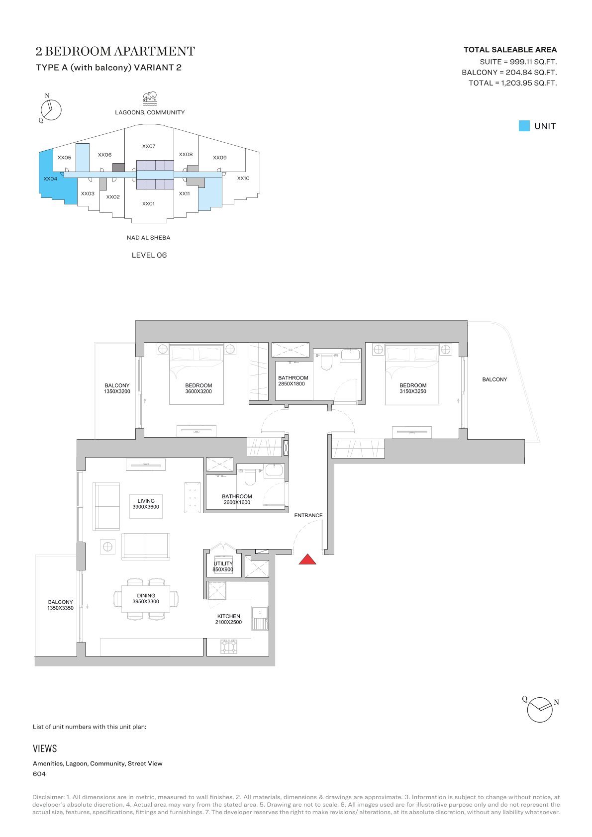 SUITE = 999.11 SQ.FT. BALCONY = 204.84 SQ.FT. TOTAL = 1,203.95 SQ.FT.