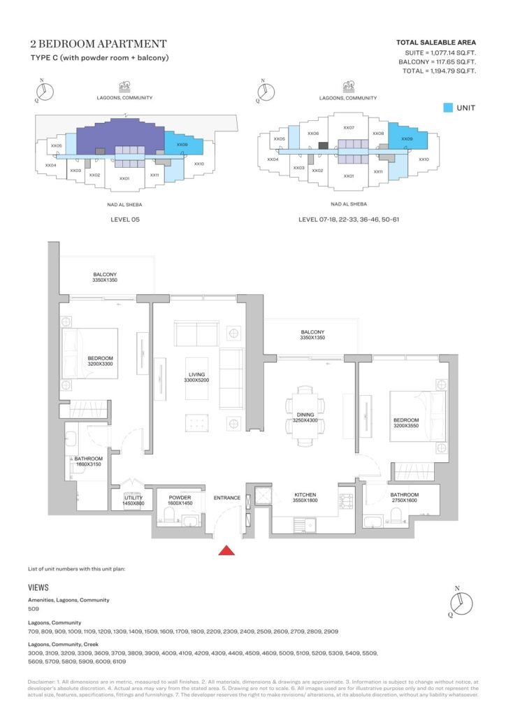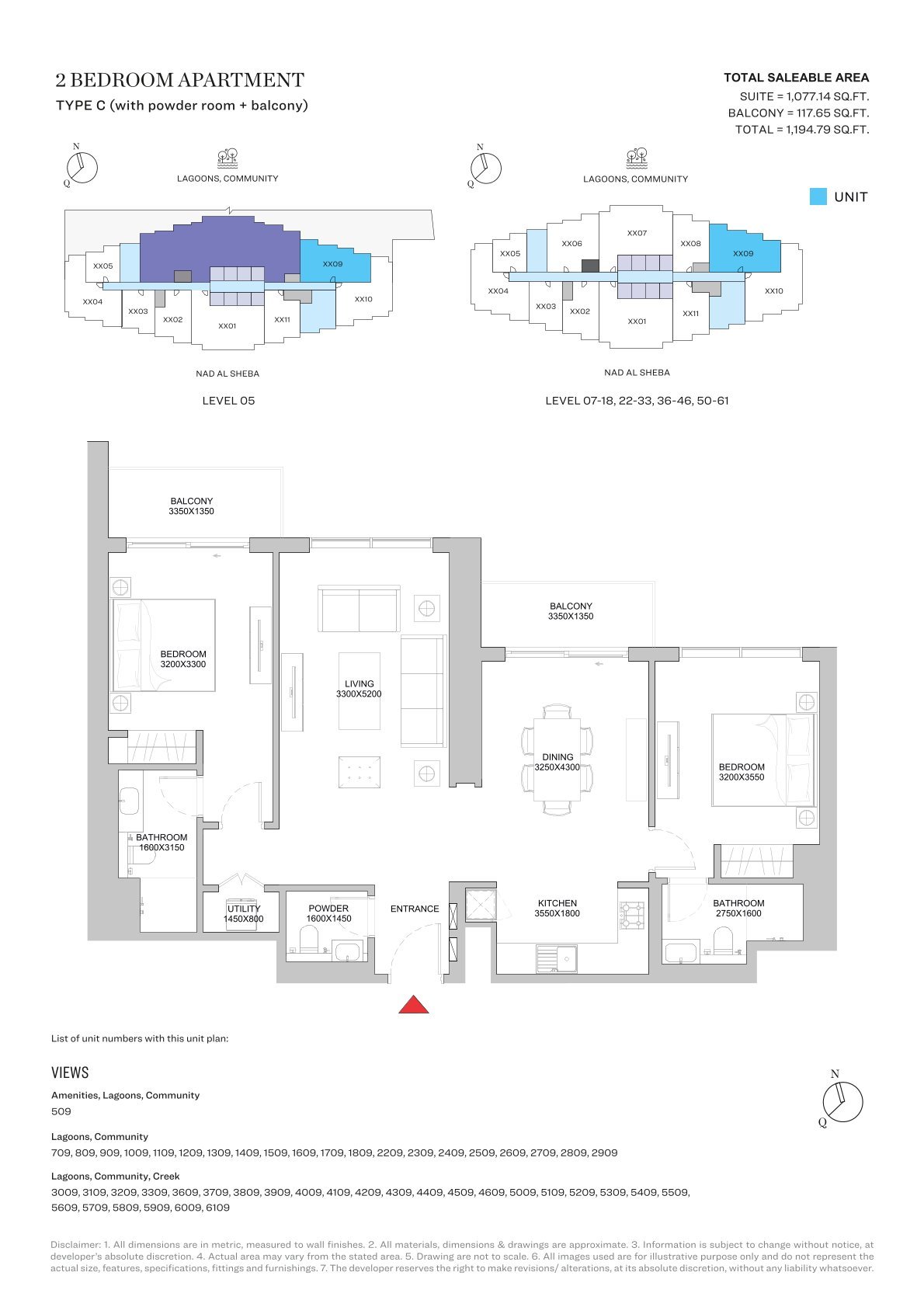 SUITE = 1,077.14 SQ.FT. BALCONY = 117.65 SQ.FT. TOTAL = 1,194.79 SQ.FT.
