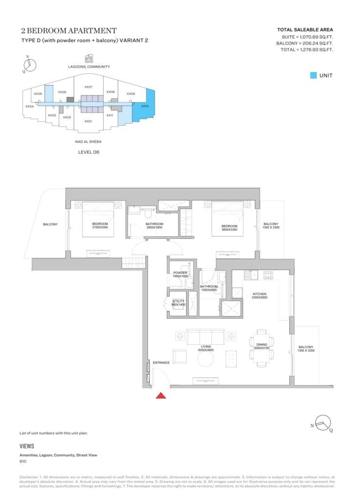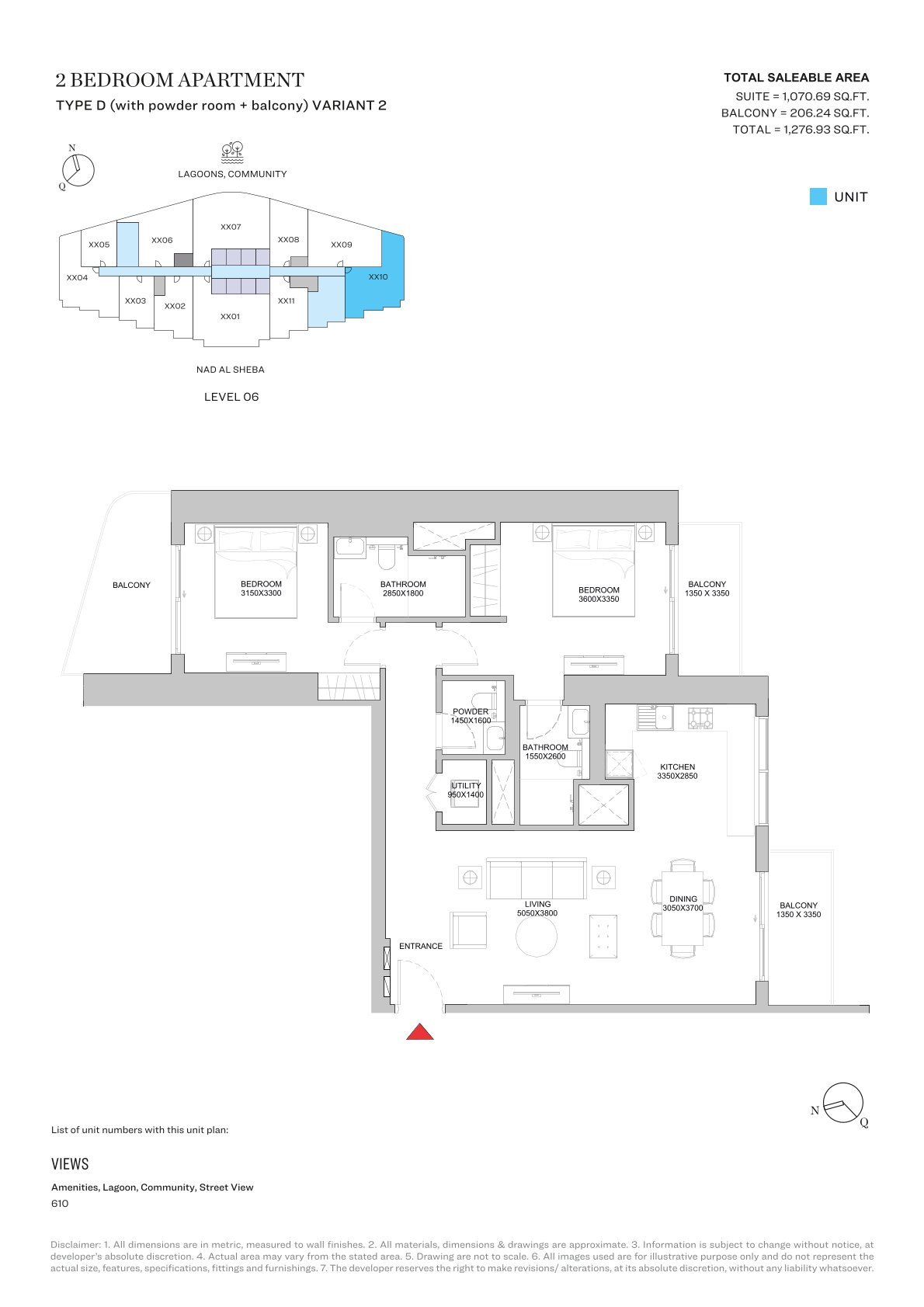 SUITE = 1,070.69 SQ.FT. BALCONY = 206.24 SQ.FT. TOTAL = 1,276.93 SQ.FT.