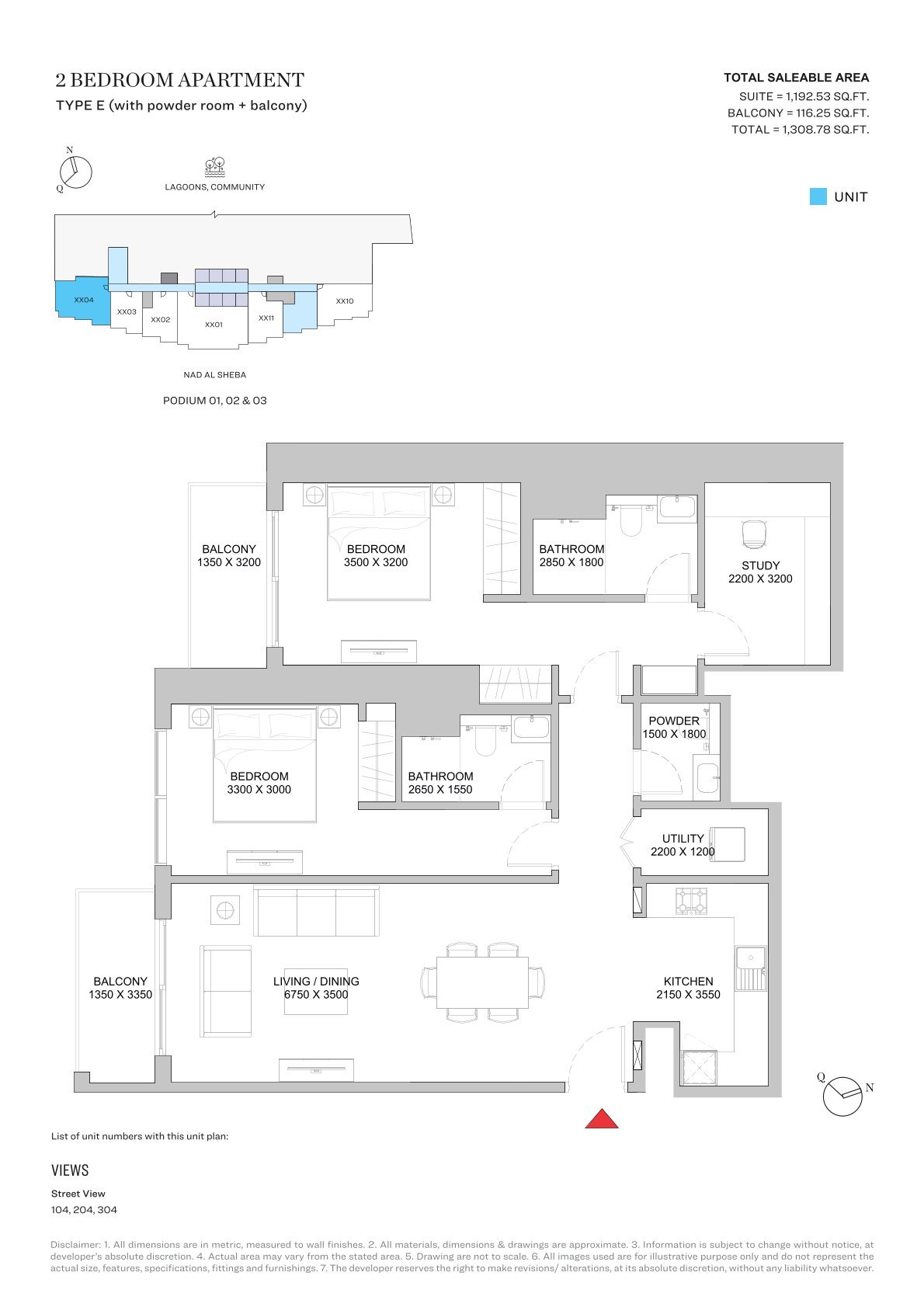 SUITE = 1,192.53 SQ.FT. BALCONY = 116.25 SQ.FT. TOTAL = 1,308.78 SQ.FT.