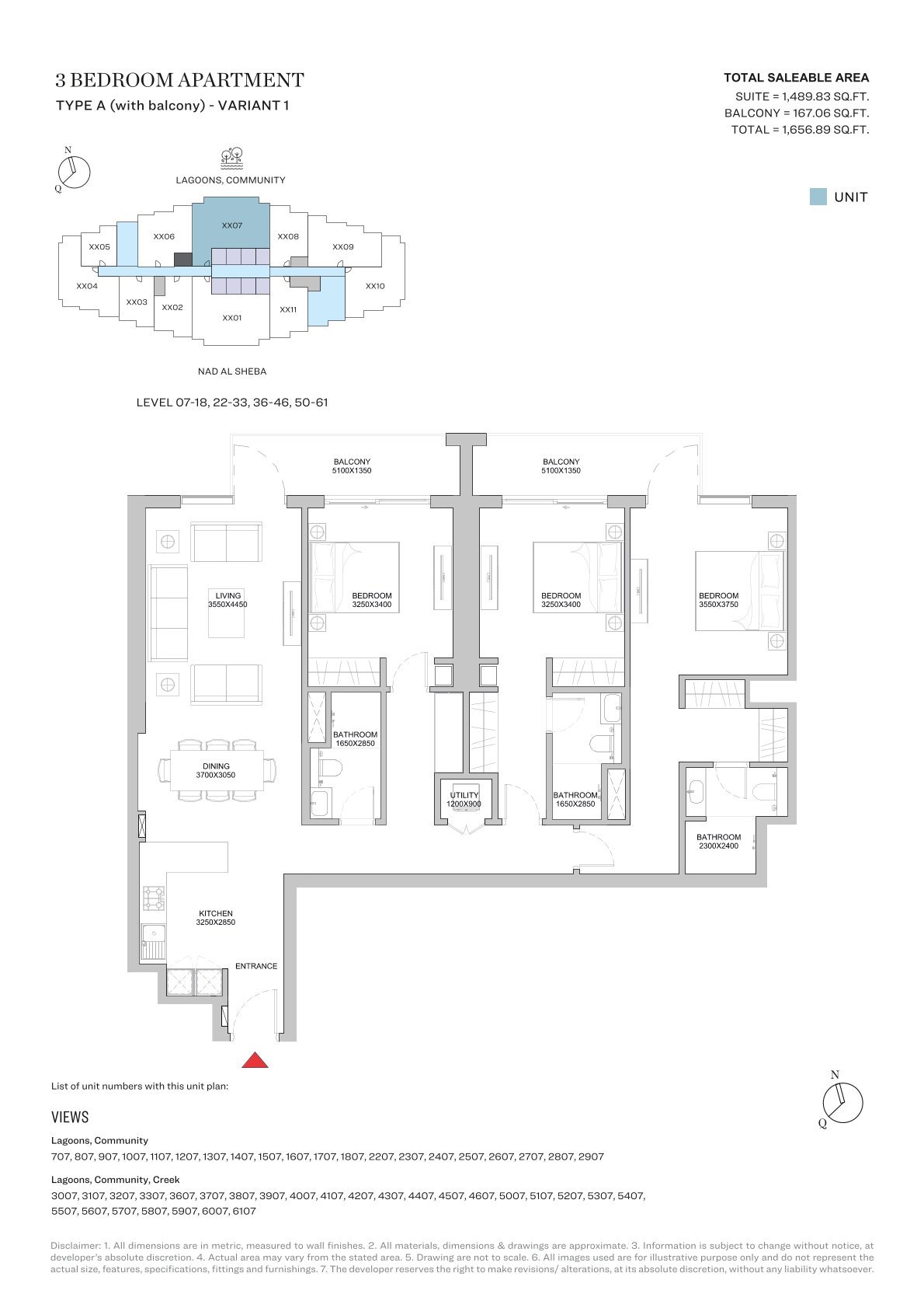 SUITE = 1,489.83 SQ.FT. BALCONY = 167.06 SQ.FT. TOTAL = 1,656.89 SQ.FT.